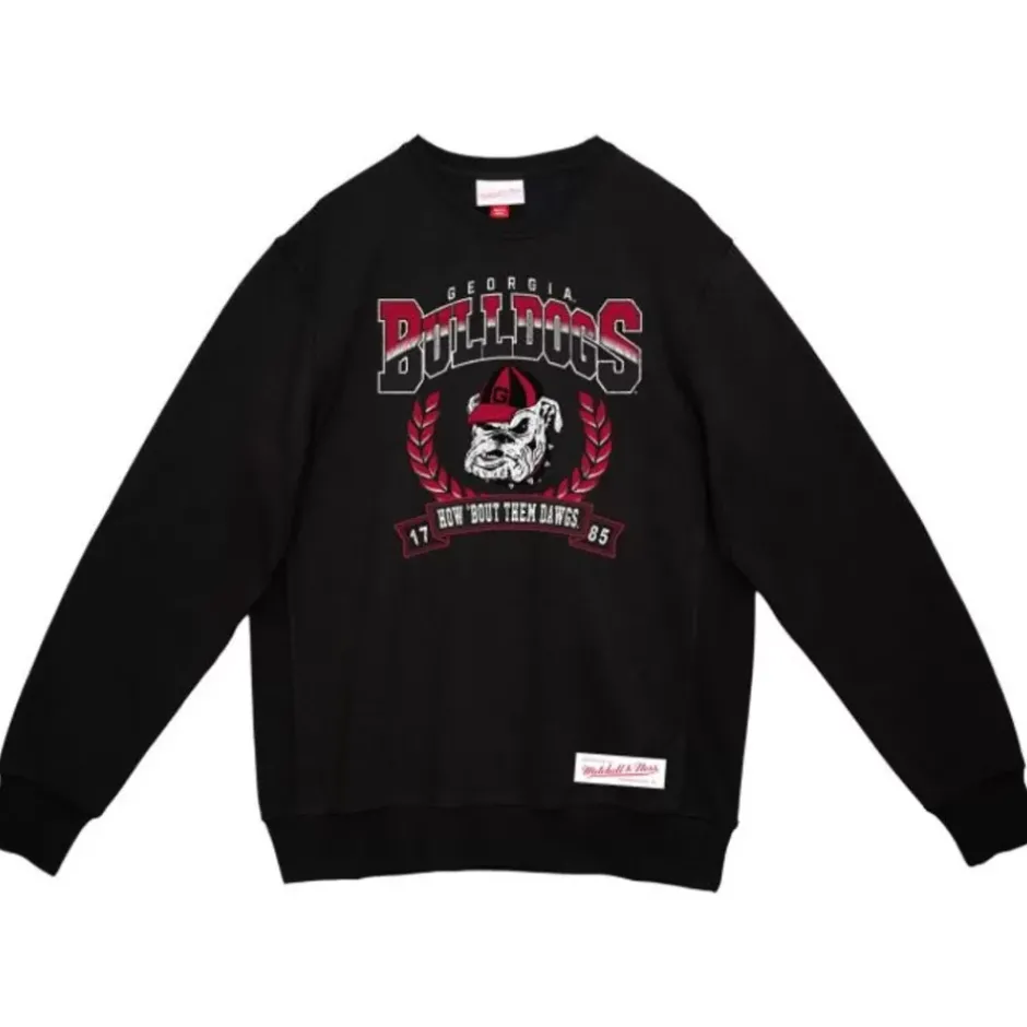 Men Mitchell & Ness Hoodies & Sweatshirts-Baseline Crew University Of Georgia