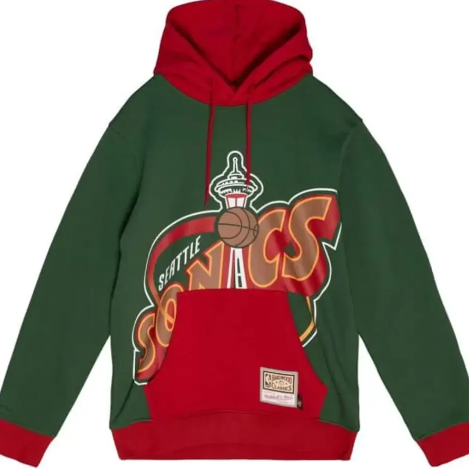 Men Mitchell & Ness Hoodies & Sweatshirts-Big Face Hoodie 5.0 Seattle Supersonics