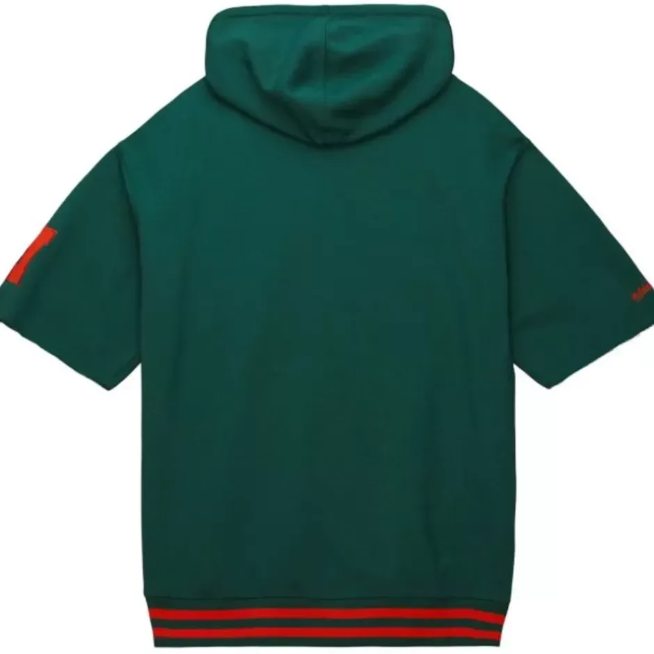 Men Mitchell & Ness Hoodies & Sweatshirts-Pre-Game Ss Fleece Hoodie University Of Miami