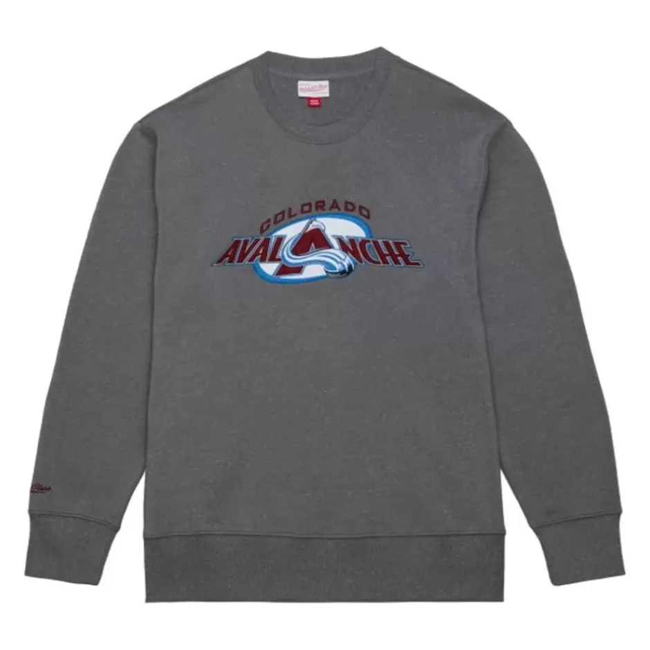 Men Mitchell & Ness Hoodies & Sweatshirts-Snow Washed Fleece Crew Current Logo Colorado Avalanche