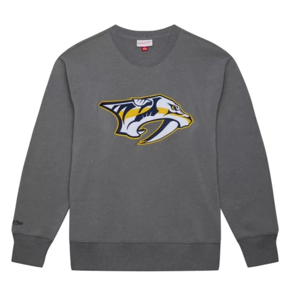 Men Mitchell & Ness Hoodies & Sweatshirts-Snow Washed Fleece Crew Current Logo Nashville Predators
