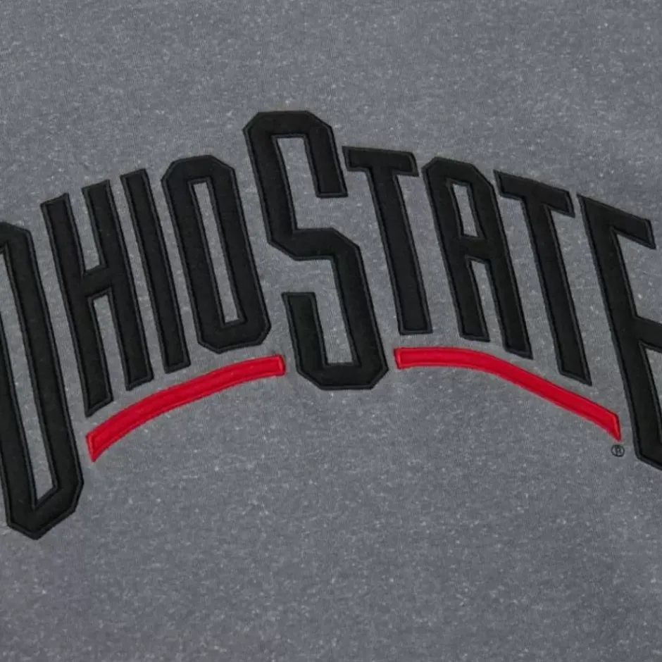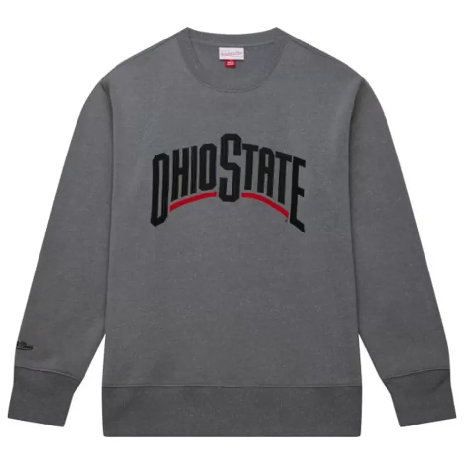 Men Mitchell & Ness Hoodies & Sweatshirts-Snow Washed Fleece Crew Current Logo Ohio State