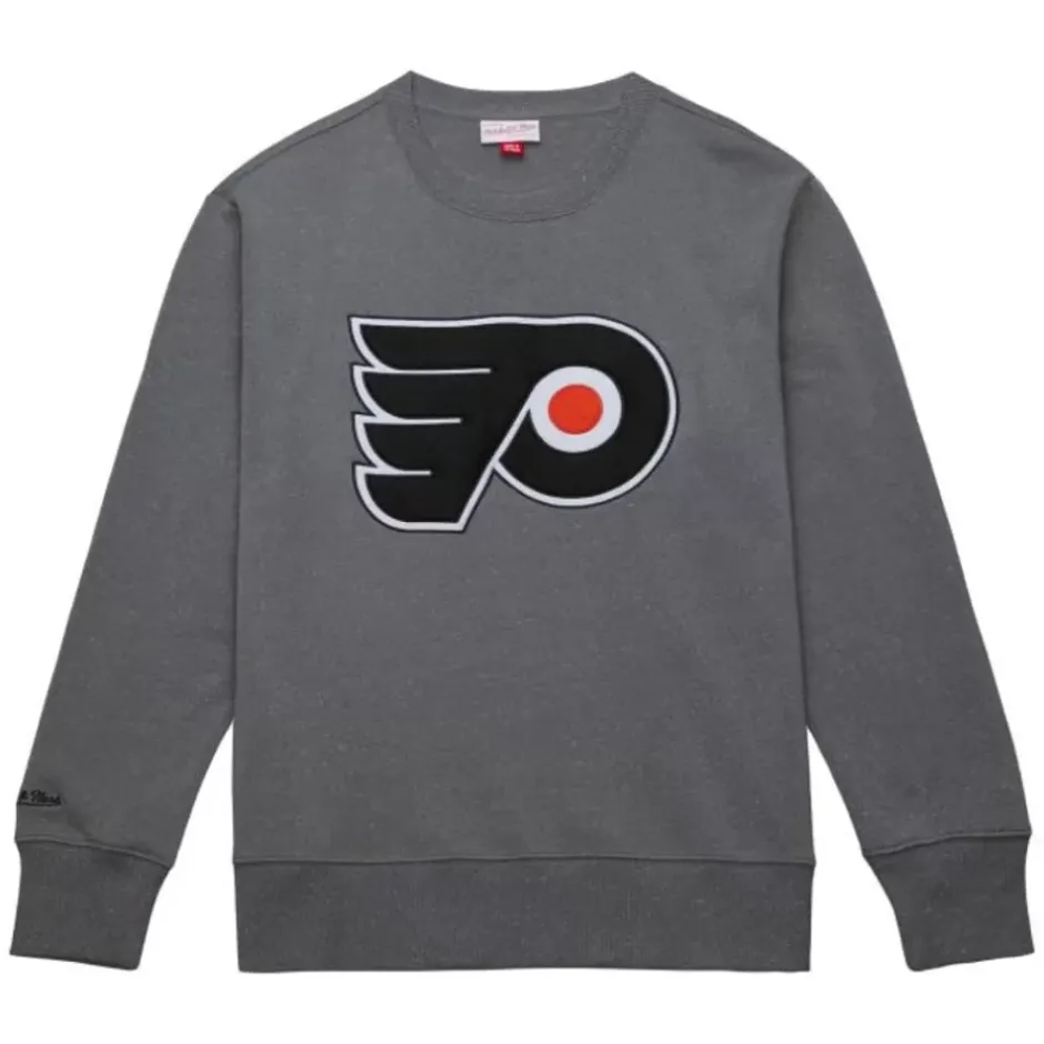 Men Mitchell & Ness Hoodies & Sweatshirts-Snow Washed Fleece Crew Current Logo Philadelphia Flyers