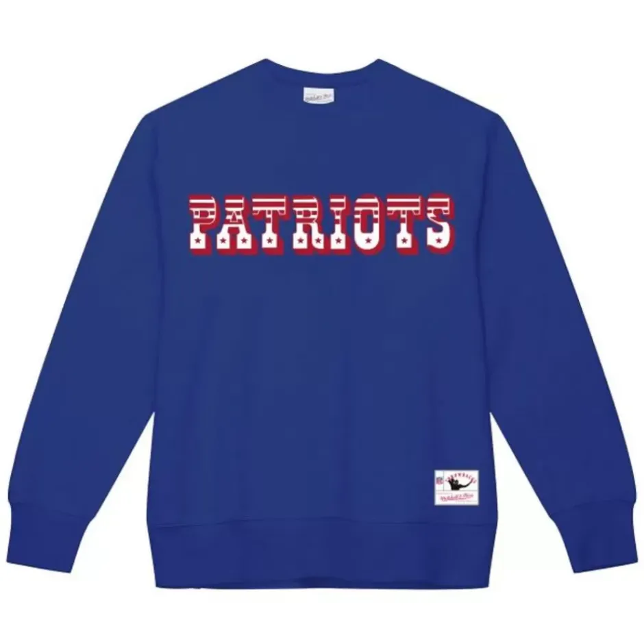 Men Mitchell & Ness Hoodies & Sweatshirts-Team Wordmark 1 Crew New England Patriots