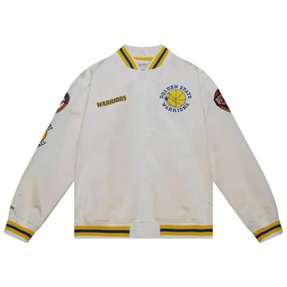 Men Mitchell & Ness Jackets & Outerwear-City Collection Lightweight Satin Jacket Golden State Warriors