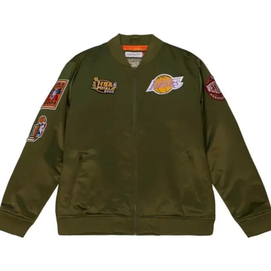 Men Mitchell & Ness Jackets & Outerwear-Flight Satin Bomber Jacket Los Angeles Lakers