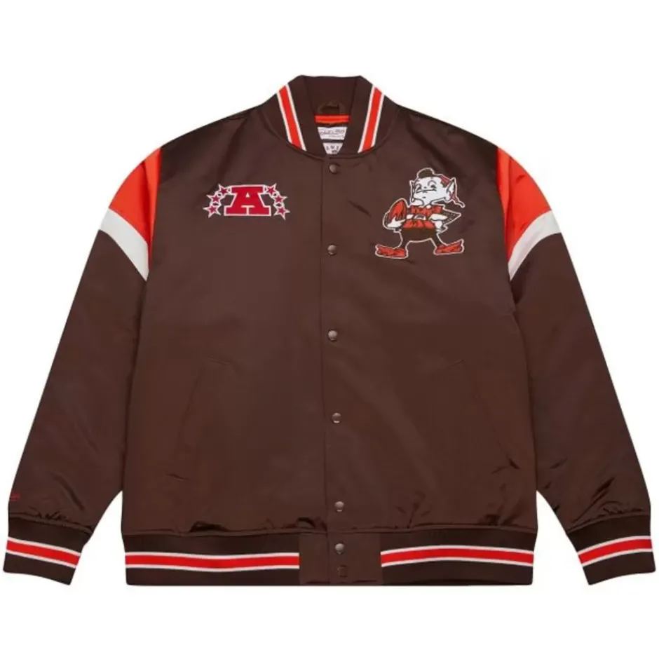 Men Mitchell & Ness Jackets & Outerwear-Heavyweight Satin Jacket Cleveland Browns