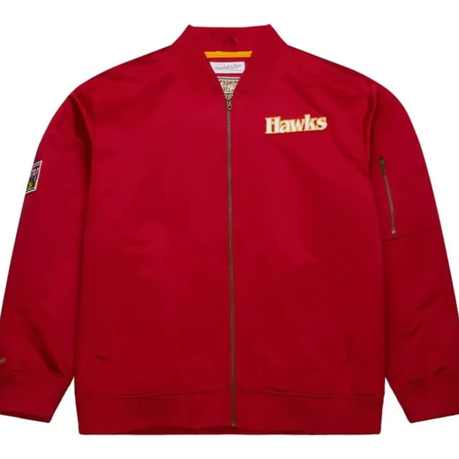 Men Mitchell & Ness Jackets & Outerwear-Lightweight Satin Bomber Vintage Logo Atlanta Hawks