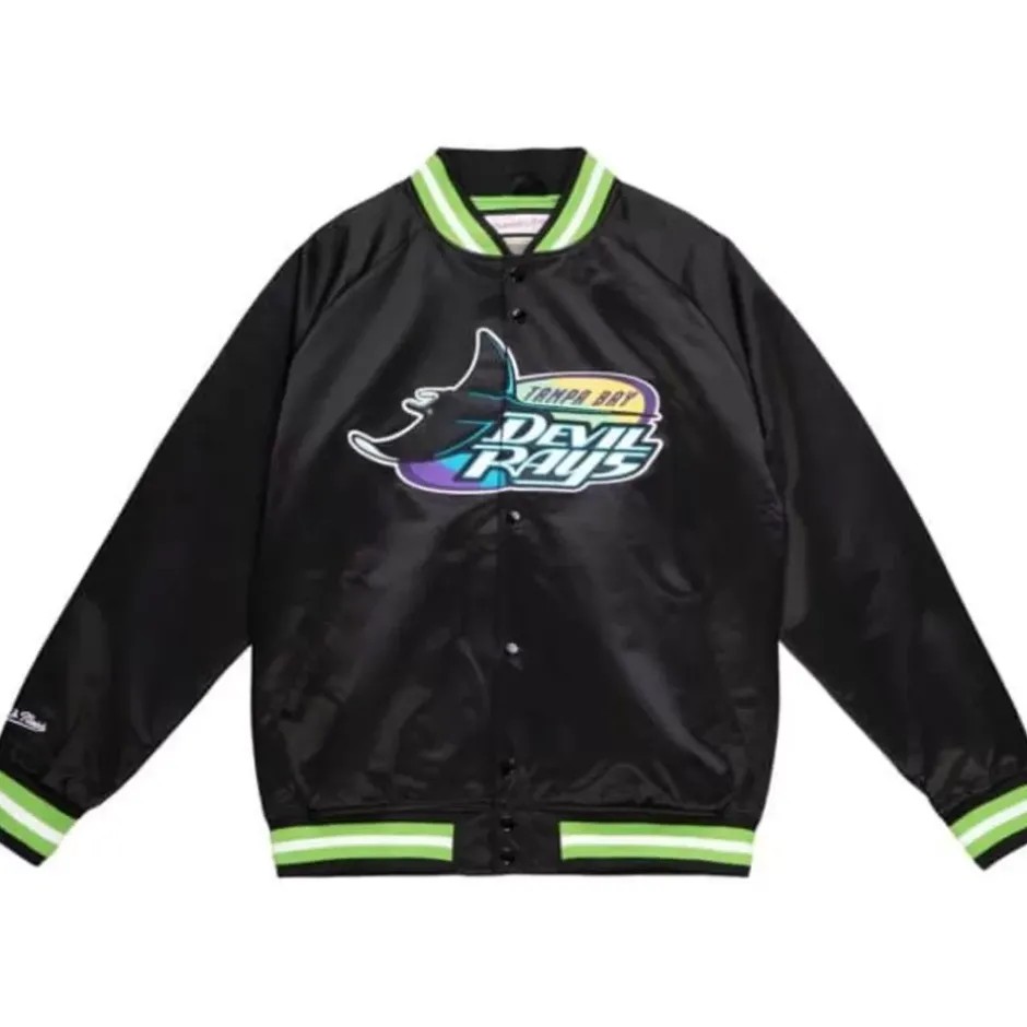 Men Mitchell & Ness Jackets & Outerwear-Lightweight Satin Jacket Tampa Bay Rays