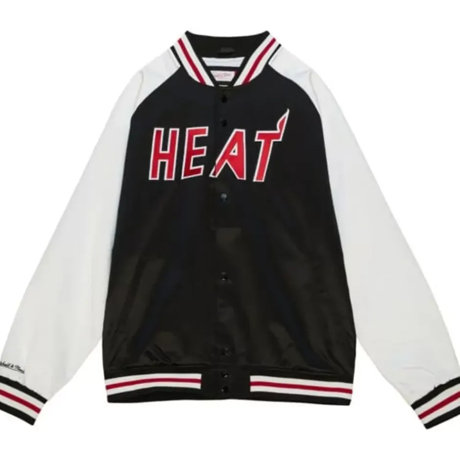 Men Mitchell & Ness Jackets & Outerwear-Primetime Lightweight Satin Jacket Miami Heat