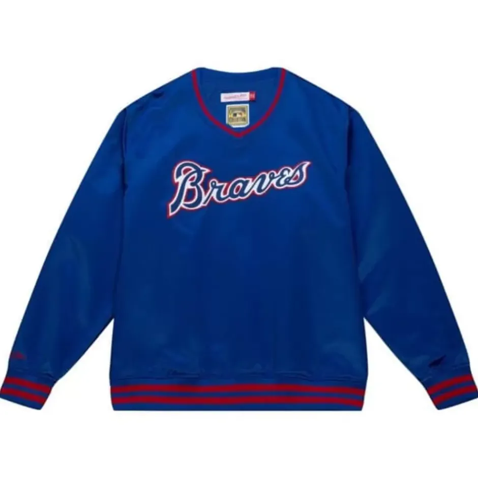 Men Mitchell & Ness Jackets & Outerwear-Sideline Pullover Satin Jacket Atlanta Braves