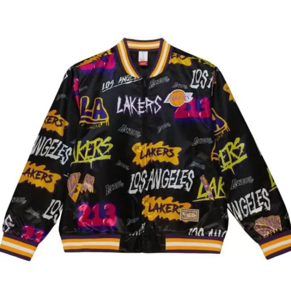 Men Mitchell & Ness Jackets & Outerwear-Slap Sticker Reversible Jacket Los Angeles Lakers