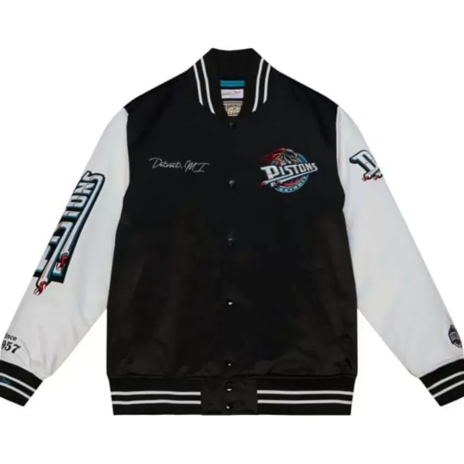 Men Mitchell & Ness Jackets & Outerwear-Team Origins Varsity Satin Jacket Detroit Pistons