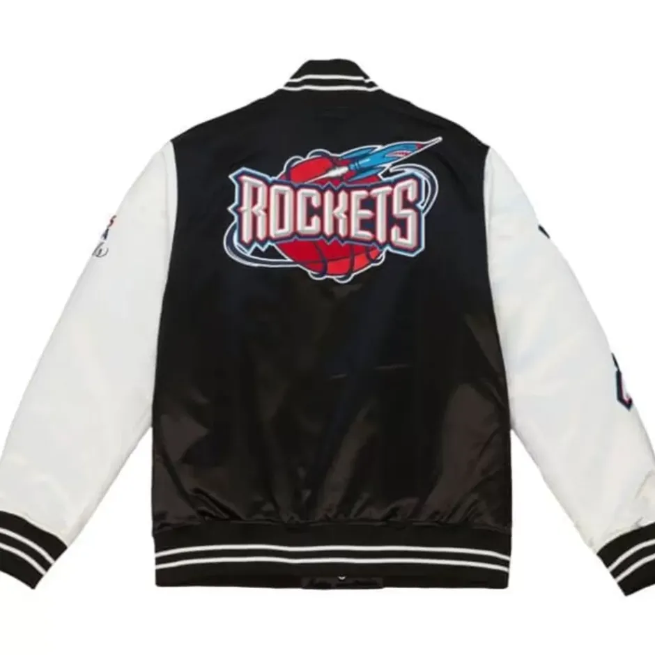 Men Mitchell & Ness Jackets & Outerwear-Team Origins Varsity Satin Jacket Houston Rockets