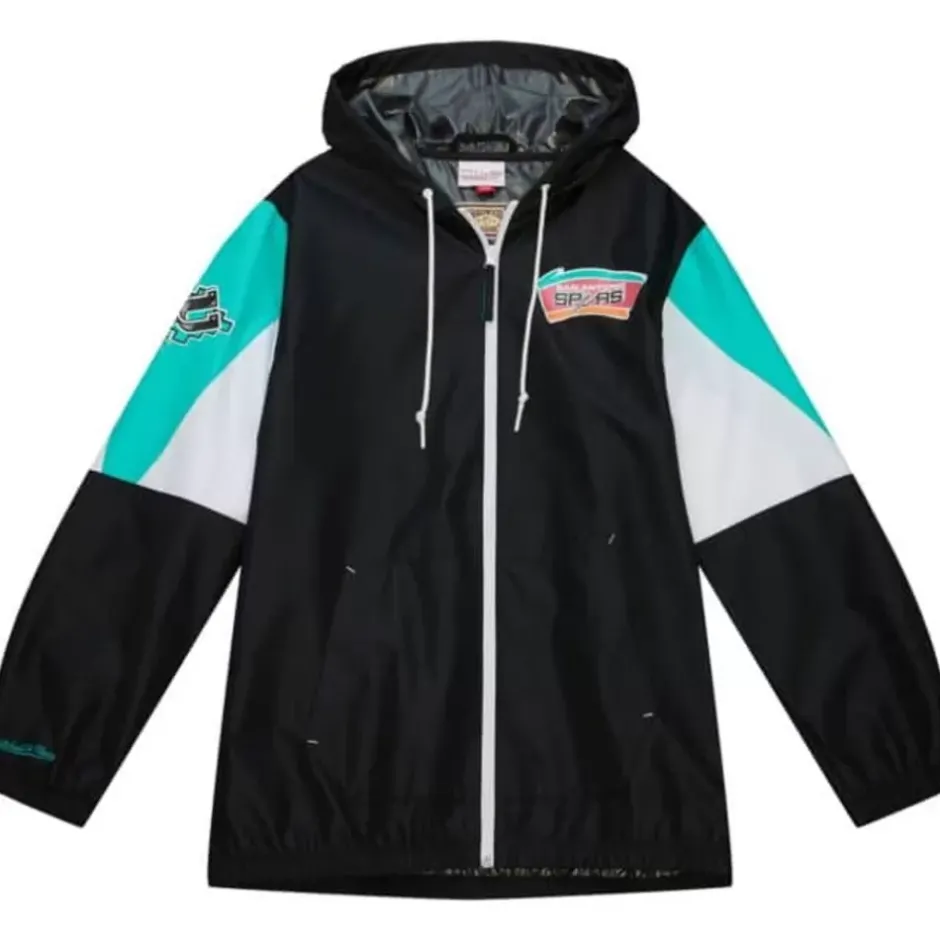 Men Mitchell & Ness Jackets & Outerwear-Throw It Back Full Zip Windbreaker San Antonio Spurs