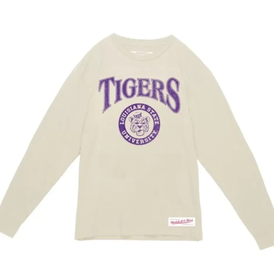 Men Mitchell & Ness T-Shirts & Tops-Arched Logo Lockup Slub Ls Tee Louisiana State University