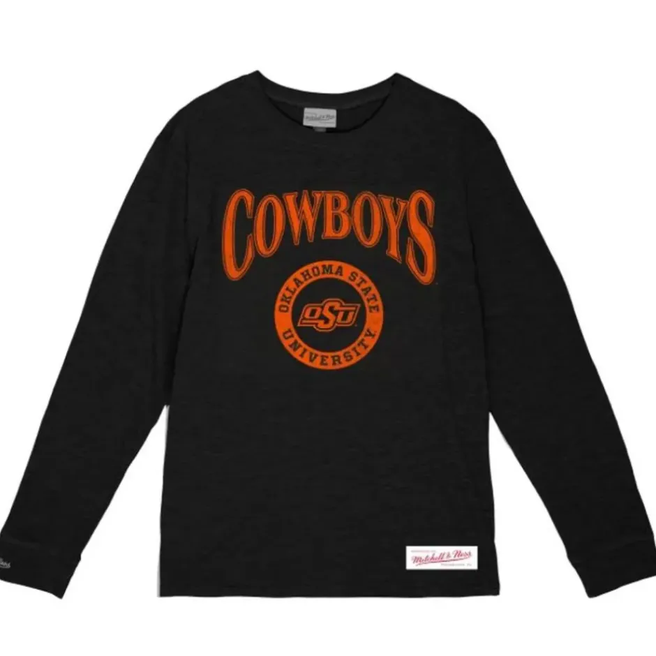 Men Mitchell & Ness T-Shirts & Tops-Arched Logo Lockup Slub Ls Tee Oklahoma State University