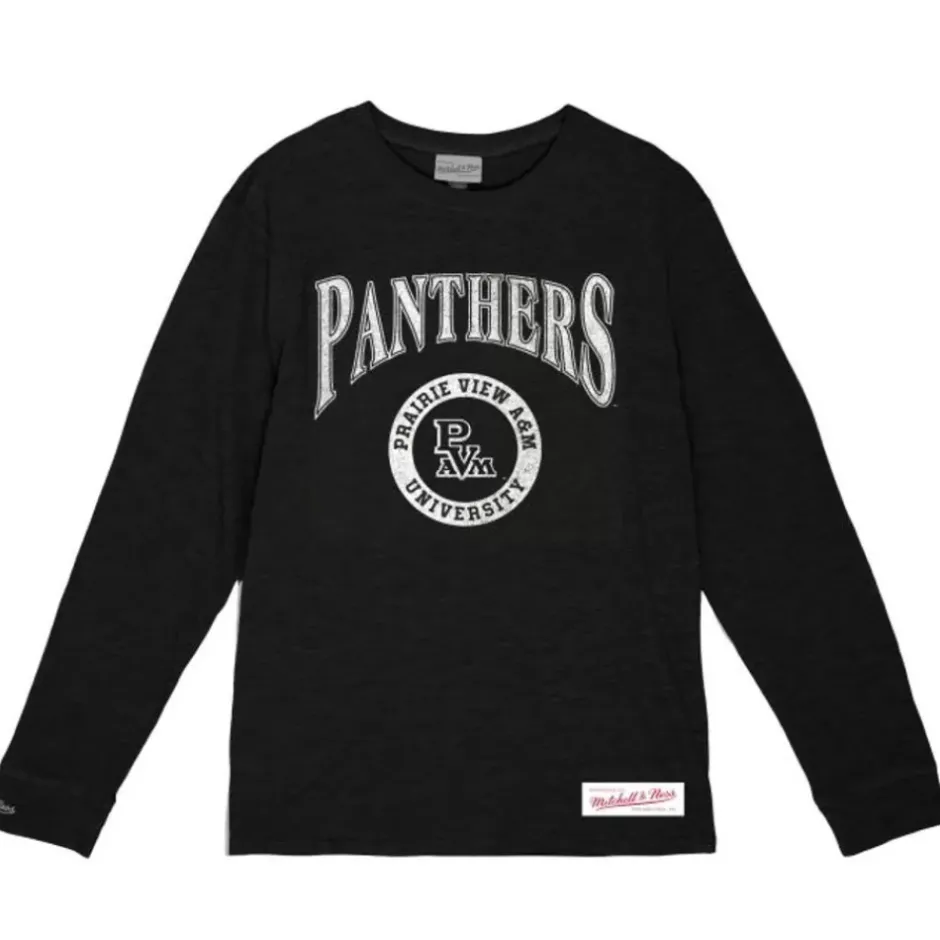 Men Mitchell & Ness T-Shirts & Tops-Arched Logo Lockup Slub Ls Tee Prairie View A&M University