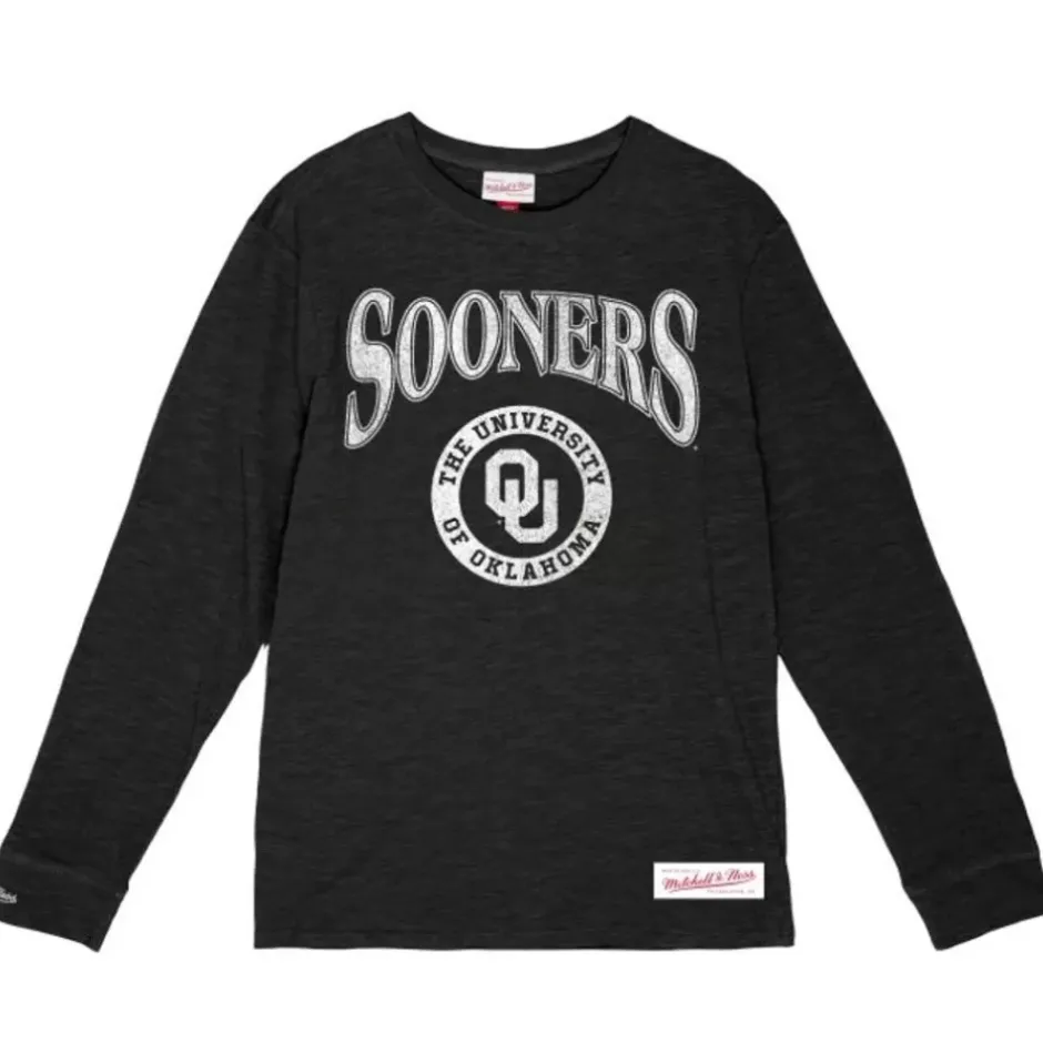 Men Mitchell & Ness T-Shirts & Tops-Arched Logo Lockup Slub Ls Tee University Of Oklahoma