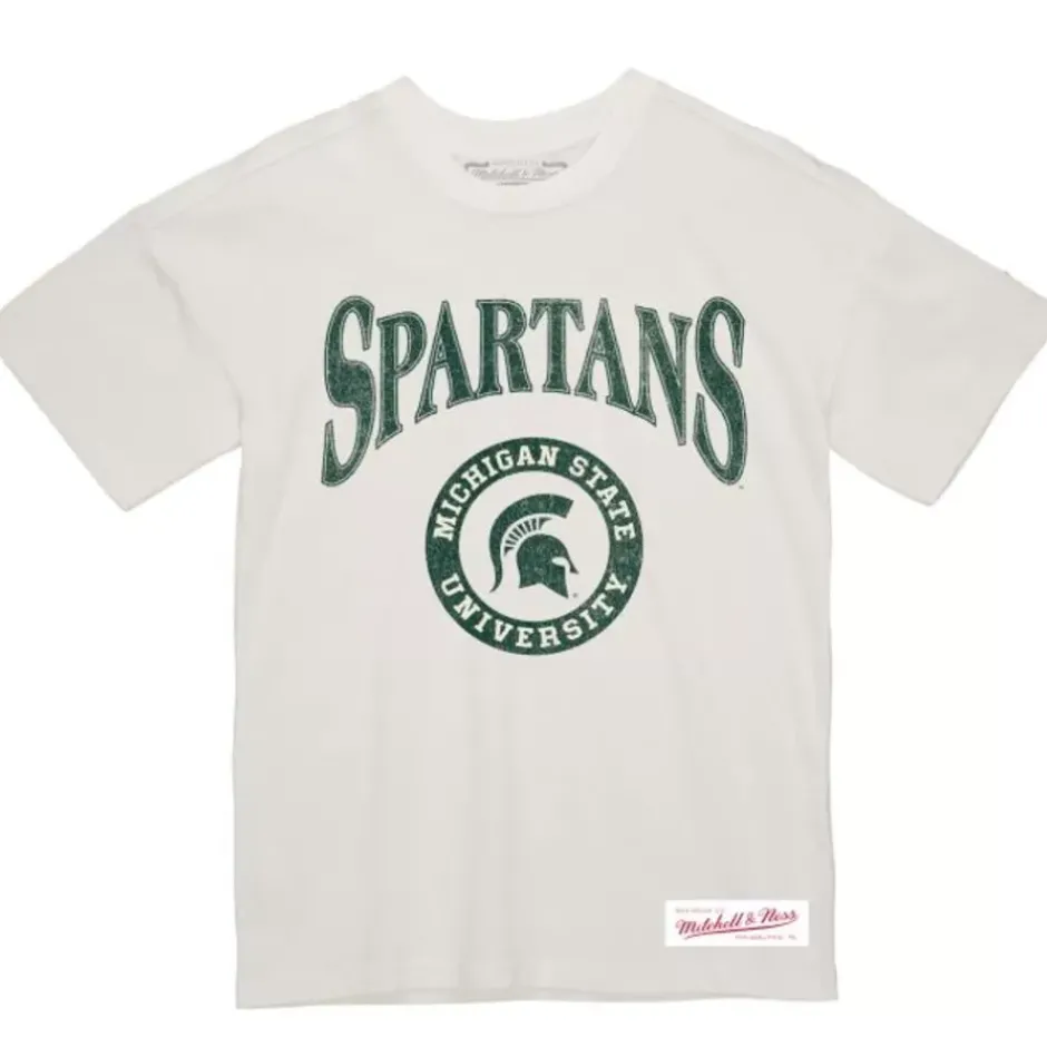 Men Mitchell & Ness T-Shirts & Tops-Arched Logo Lockup Slub Tee Michigan State University