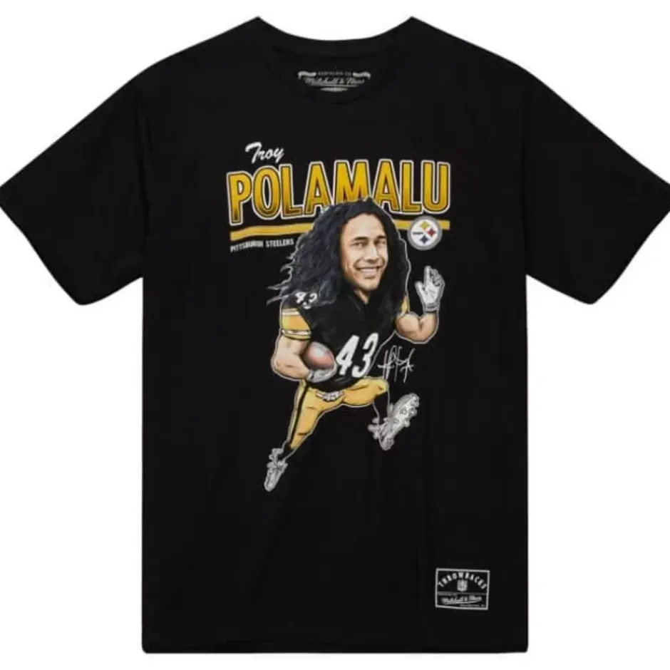 Men Mitchell & Ness T-Shirts & Tops-Caricatures Tee Pittsburgh Steelers Troy Polamalu