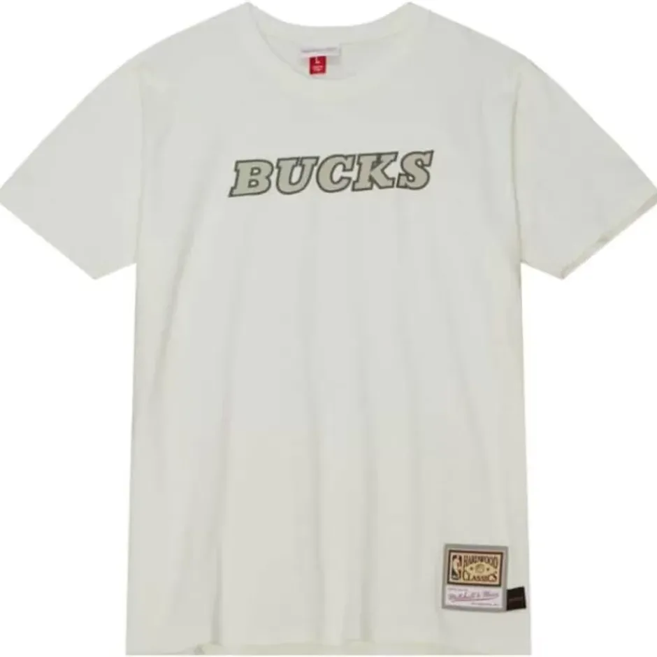 Men Mitchell & Ness T-Shirts & Tops-Cream Ss Tee Milwaukee Bucks