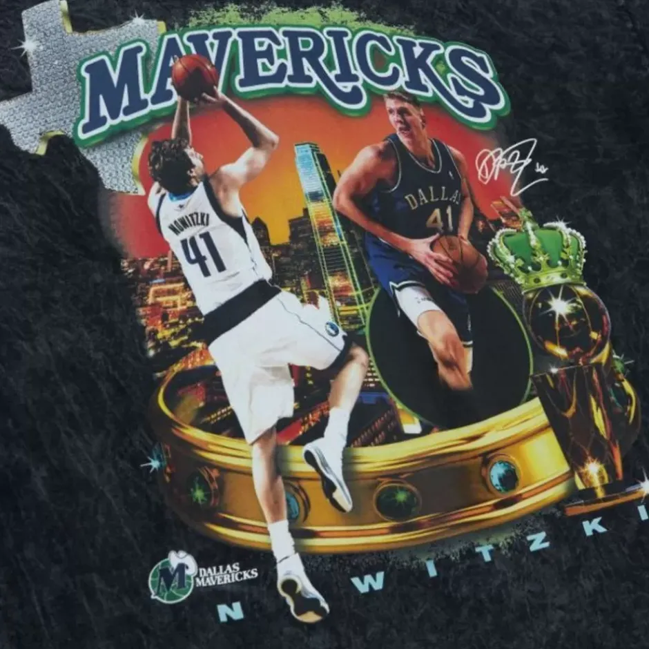 Men Mitchell & Ness T-Shirts & Tops-Crowned Tee Dallas Mavericks Dirk Nowitzki