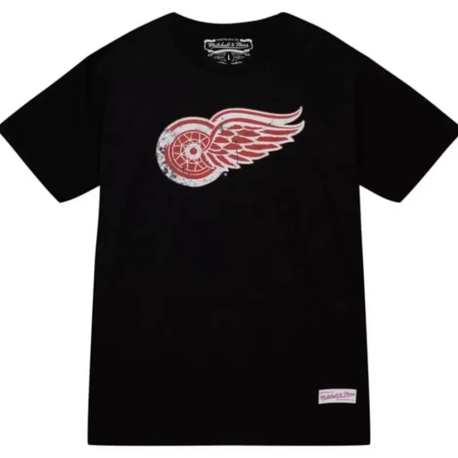 Men Mitchell & Ness T-Shirts & Tops-Distressed Basic Logo Tee Detroit Red Wings