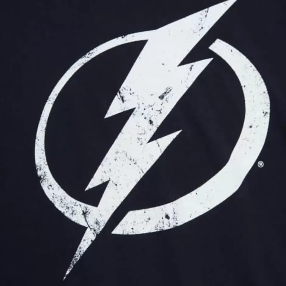 Men Mitchell & Ness T-Shirts & Tops-Distressed Logo Ls Tee Tampa Bay Lightning
