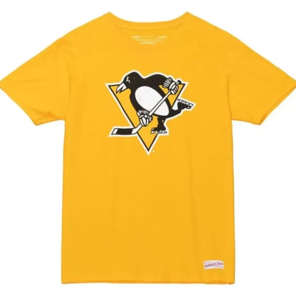 Men Mitchell & Ness T-Shirts & Tops-Distressed Logo Tee Pittsburgh Penguins