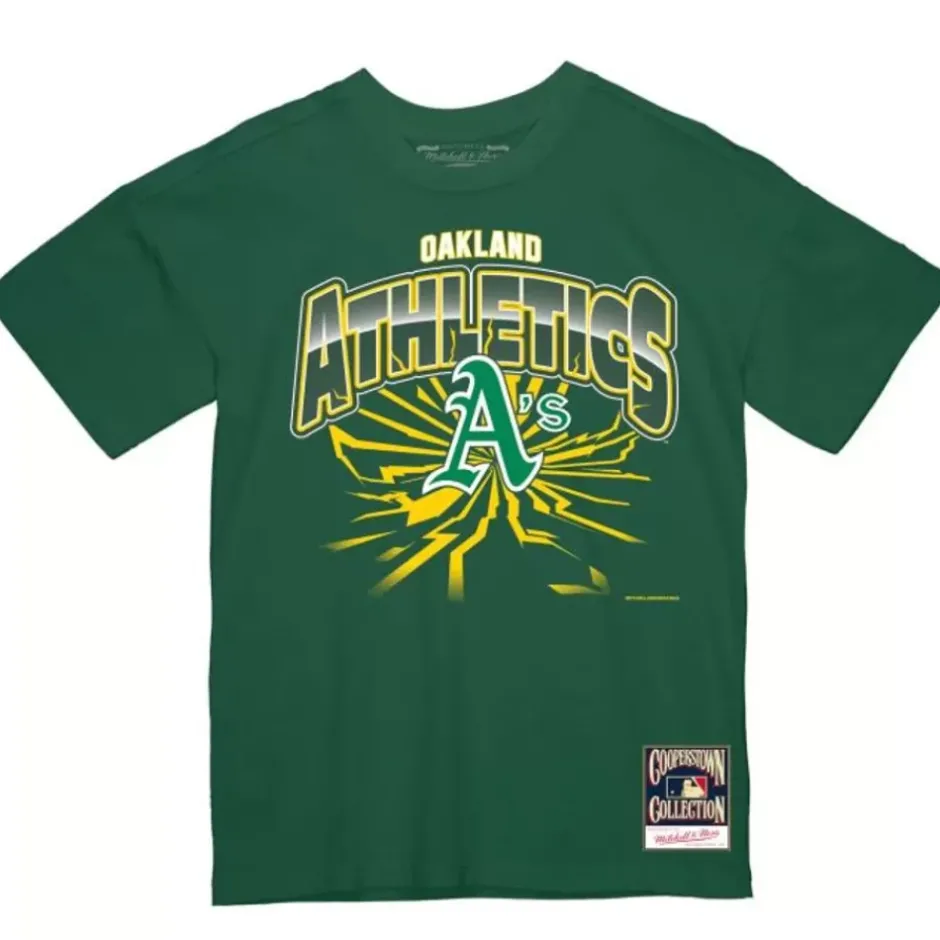 Men Mitchell & Ness T-Shirts & Tops-Earthquake Tee Oakland Athletics