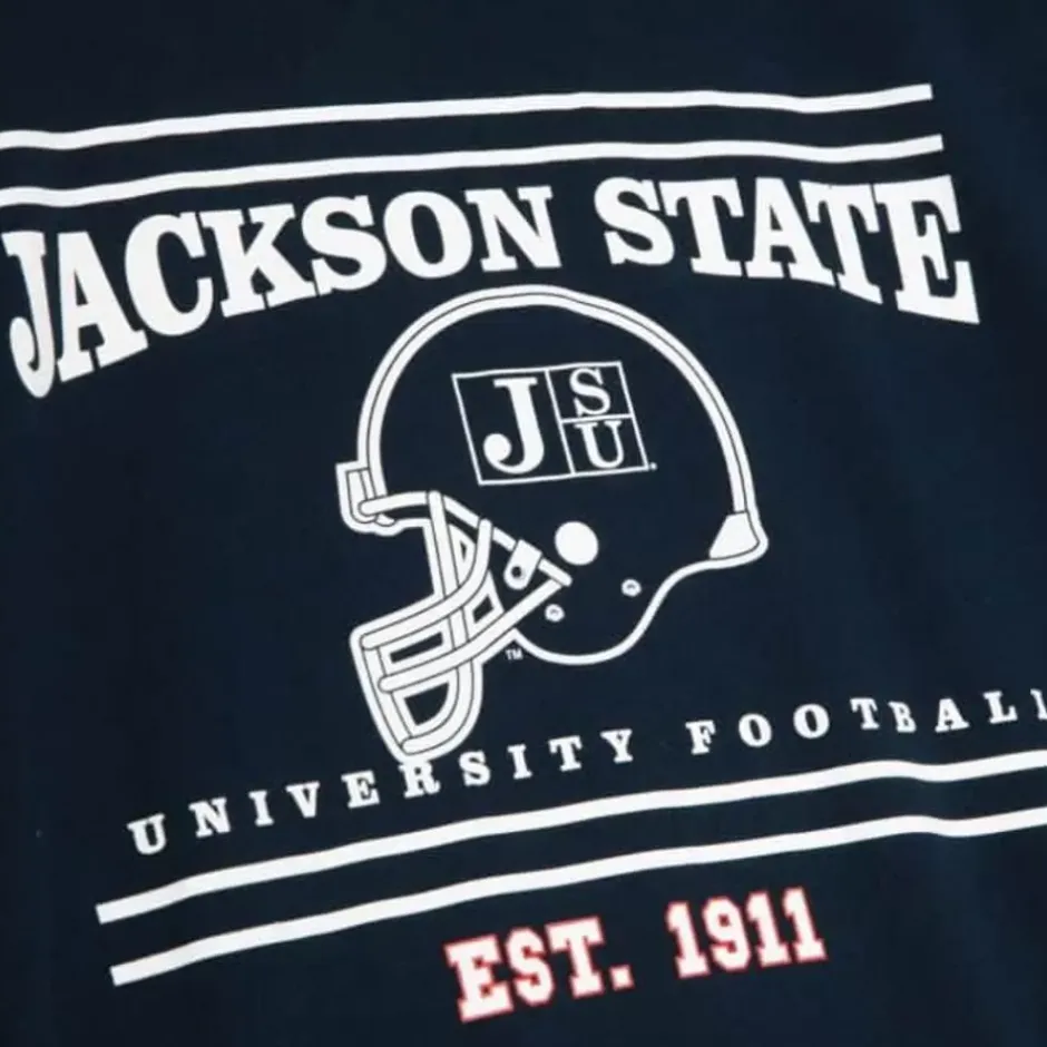 Men Mitchell & Ness T-Shirts & Tops-Football Helmet Graphic Tee Jackson State University