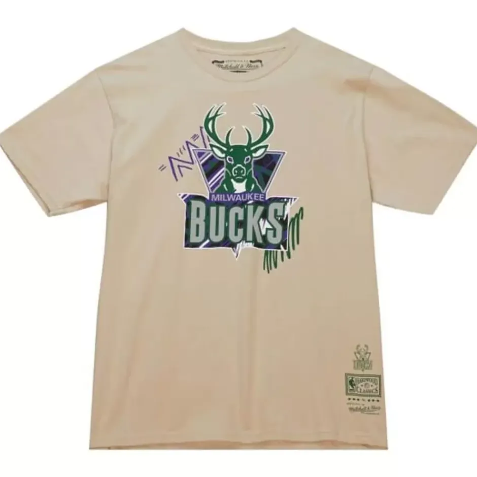 Men Mitchell & Ness T-Shirts & Tops-Game Day Pattern Tee Milwaukee Bucks