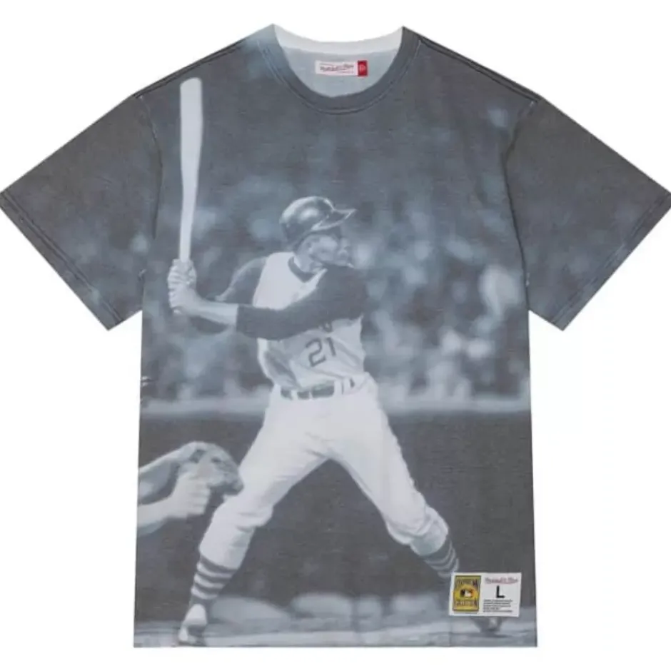 Men Mitchell & Ness T-Shirts & Tops-Highlight Sublimated Player Tee Pittsburgh Pirates Roberto Clemente