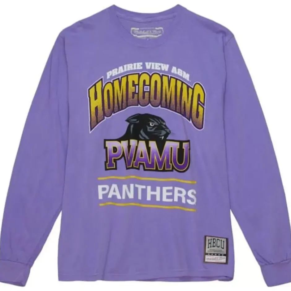 Men Mitchell & Ness T-Shirts & Tops-Homecoming Arch Ls Tee Prairie View A&M University