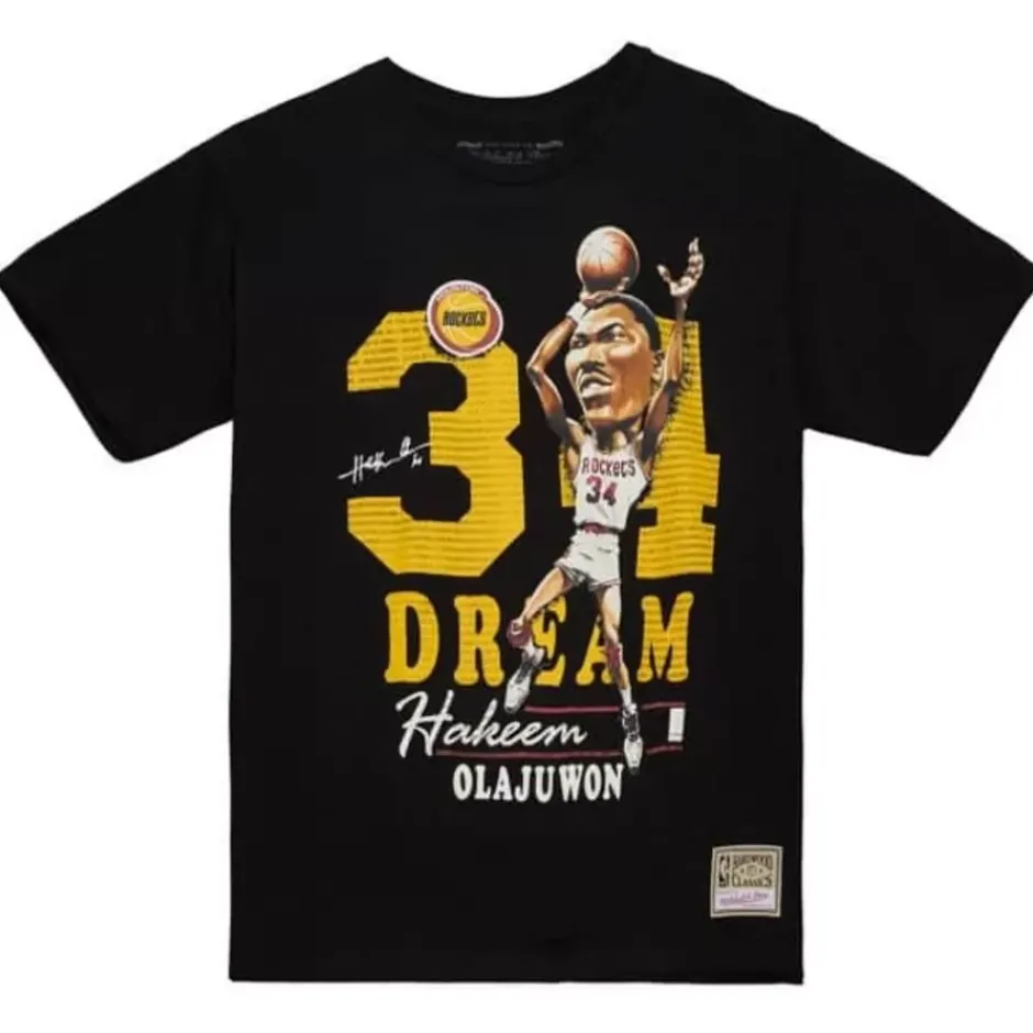 Men Mitchell & Ness T-Shirts & Tops-Hwc Caricatures Houston Rockets Hakeem Olajuwon