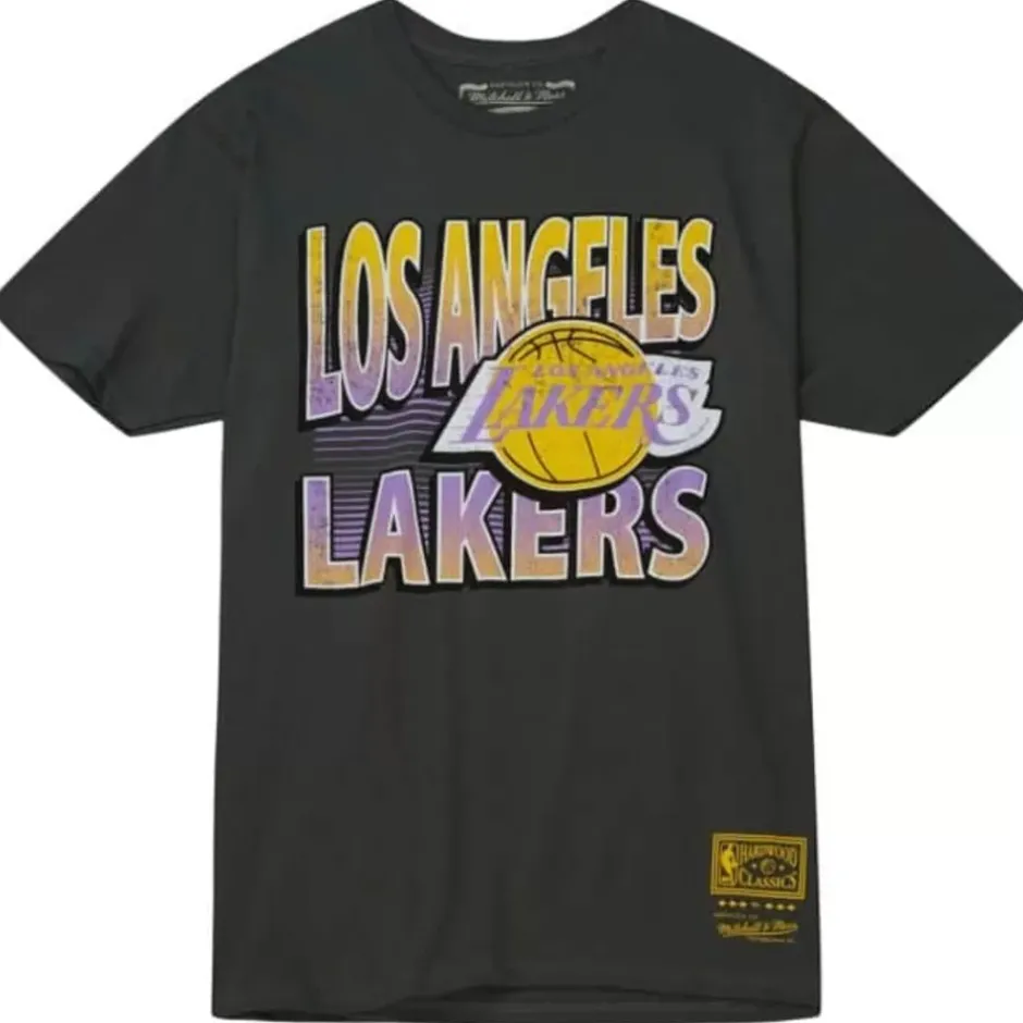 Men Mitchell & Ness T-Shirts & Tops-Incline Stacked Tee Los Angeles Lakers