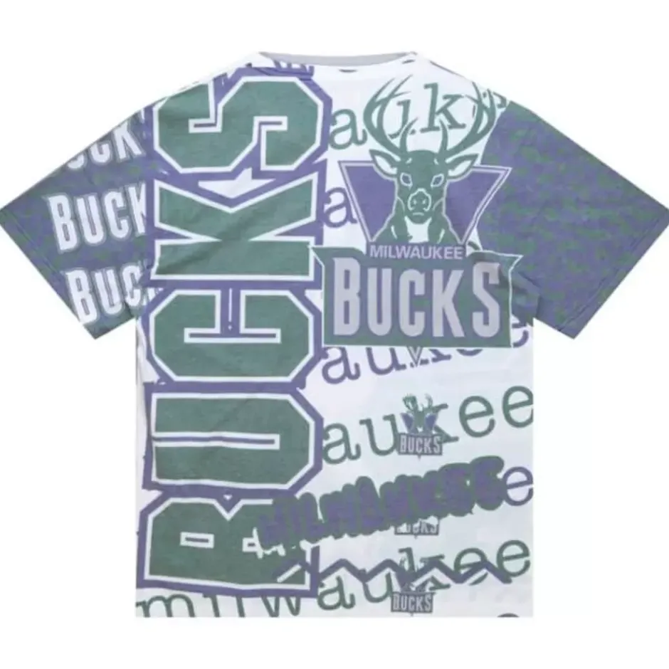 Men Mitchell & Ness T-Shirts & Tops-Jumbotron 2.0 Sublimated Ss Tee Milwaukee Bucks