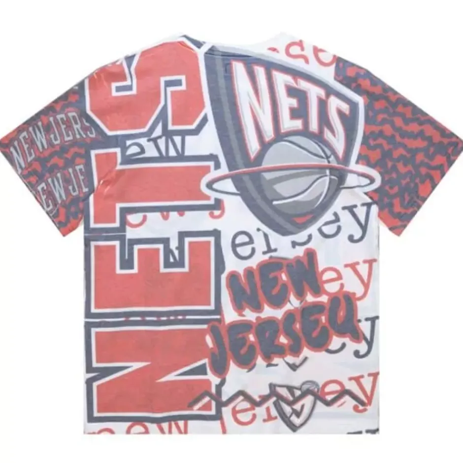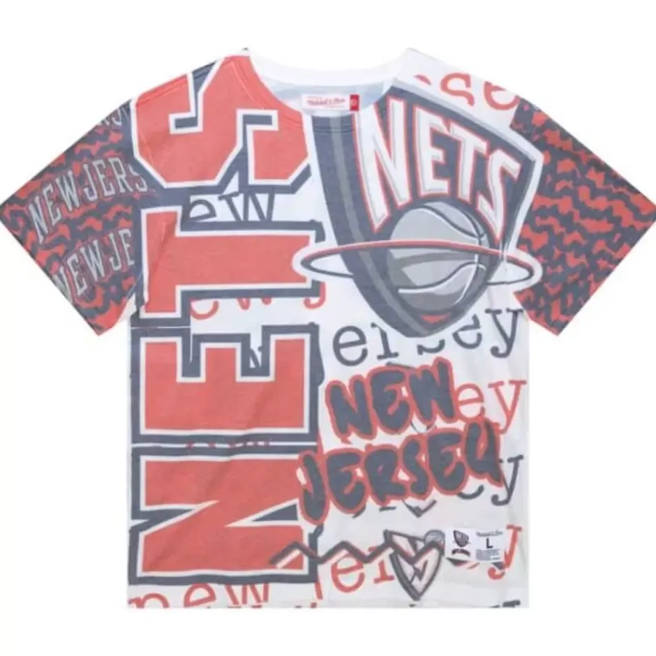 Men Mitchell & Ness T-Shirts & Tops-Jumbotron 2.0 Sublimated Ss Tee New Jersey Nets