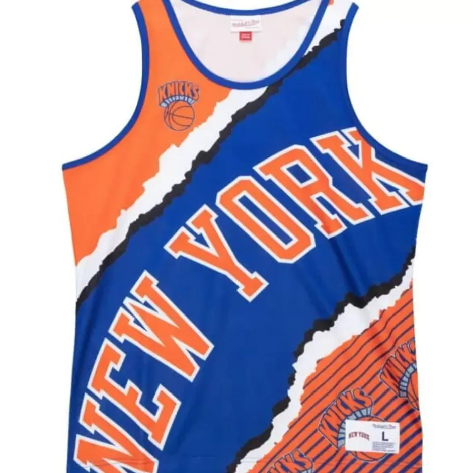 Men Mitchell & Ness T-Shirts & Tops-Jumbotron 2.0 Sublimated Tank New York Knicks