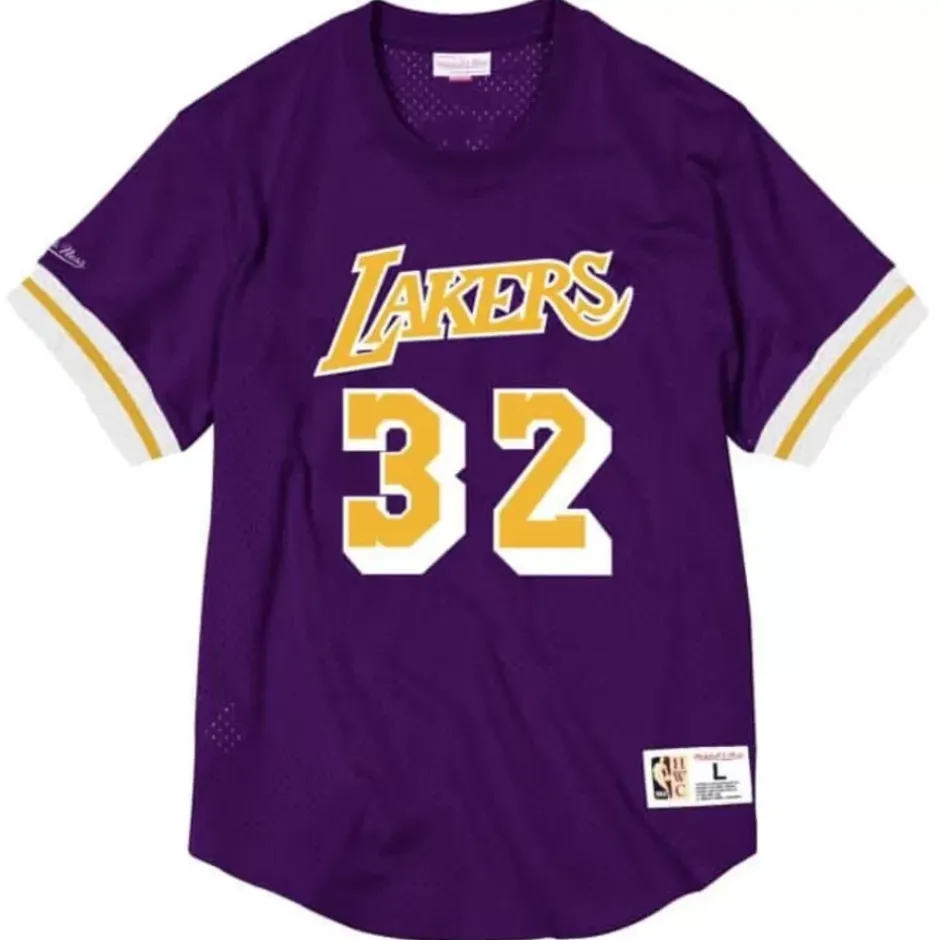 Men Mitchell & Ness T-Shirts & Tops-Name And Number Mesh Top Los Angeles Lakers Magic Johnson