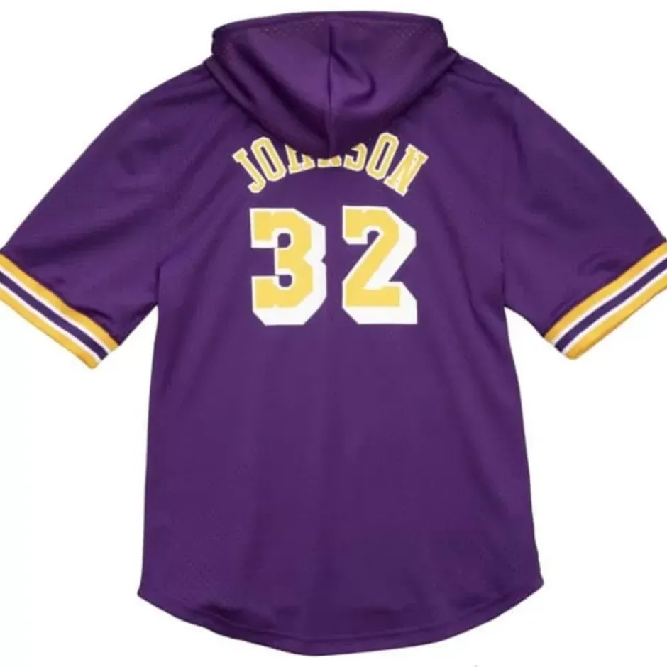 Men Mitchell & Ness T-Shirts & Tops-Name & Number Mesh Ss Hoodie Los Angeles Lakers 1985 Magic Johnson