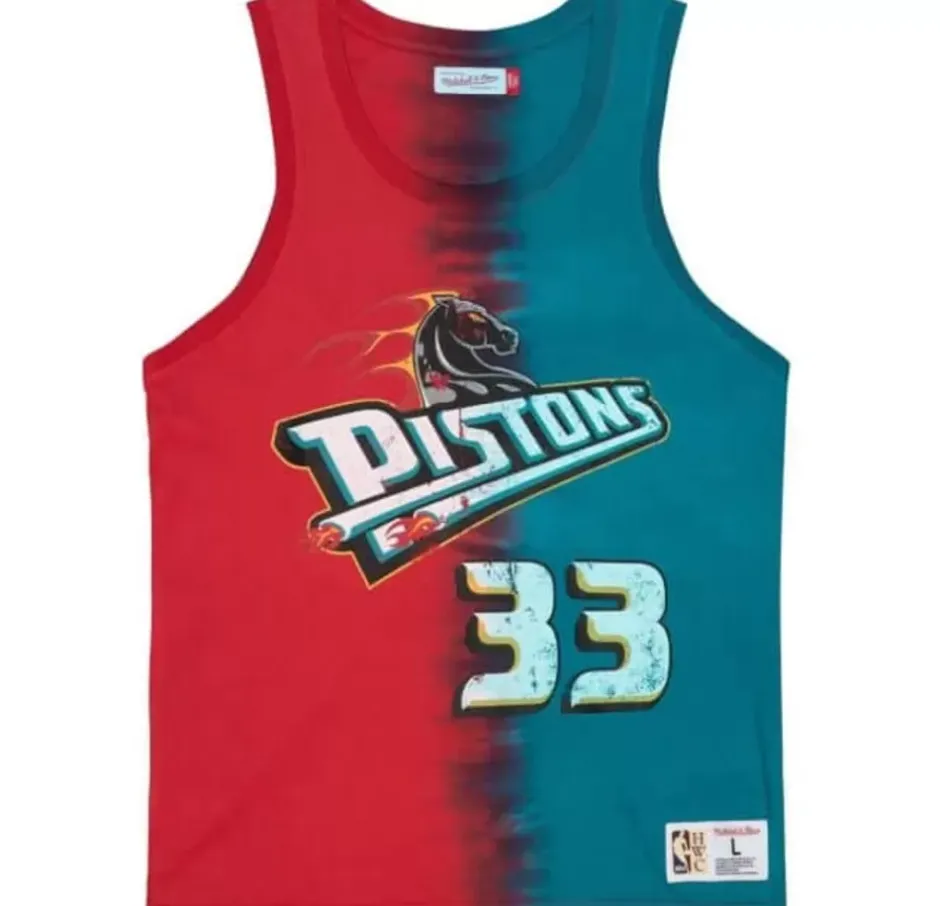 Men Mitchell & Ness T-Shirts & Tops-Tie Dye Cotton N&N Tank Detroit Pistons Grant Hill