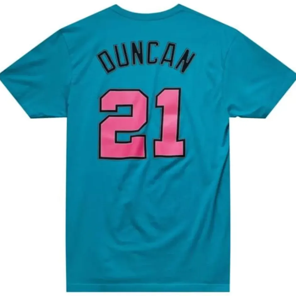 Men Mitchell & Ness T-Shirts & Tops-Traditional Name & Number Tee San Antonio Spurs 2014-15 Tim Duncan