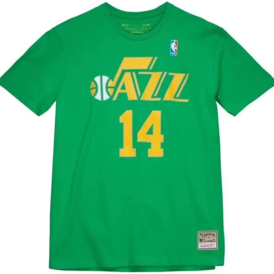 Men Mitchell & Ness T-Shirts & Tops-Traditional Name & Number Tee Utah Jazz 2000-01 Jeff Hornacek