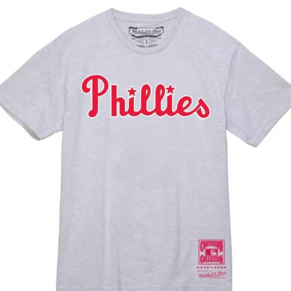 Men Mitchell & Ness T-Shirts & Tops-Wordmark 1 Tee Philadelphia Phillies