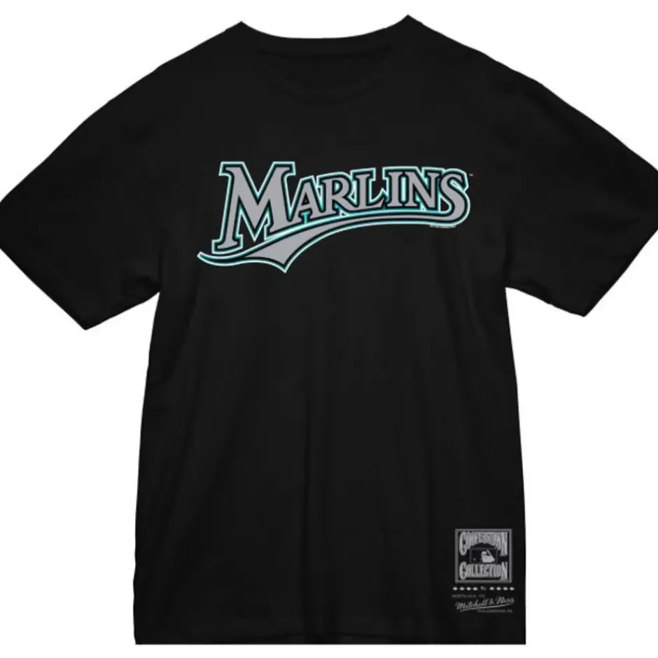 Men Mitchell & Ness T-Shirts & Tops-Wordmark 2 Tee Florida Marlins