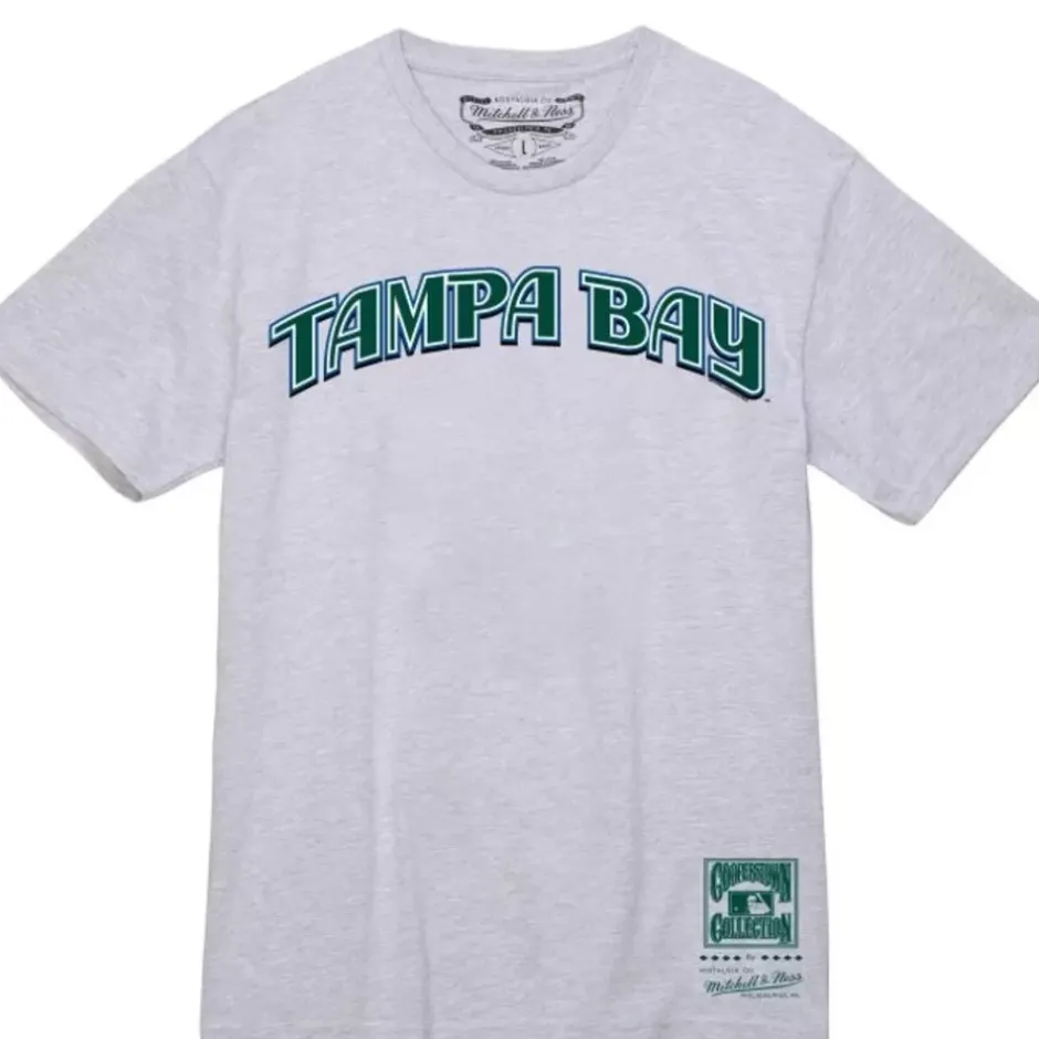 Men Mitchell & Ness T-Shirts & Tops-Wordmark 2 Tee Tampa Bay Rays