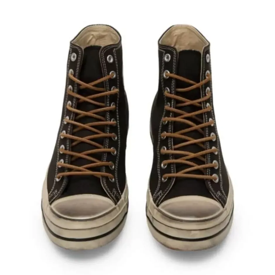 1955 Basketball High-Cut Shoe.Distressed Canvas Lace-To-To Peg-Top Upper.6Oz Canvas Loose Lining.Woven Cotton Tapped Backstay.Removable Dual-Density Molded Sock Liner For Maximum Comfort.3Mm Pu Athletic Performance Foundation Insole Board.Burnished Double Gum Toe Cap And Bais Reinforced Foxing.Buff Colored Gum Rubber Molded Outsole.Waxed Cotton & Leather Lace.