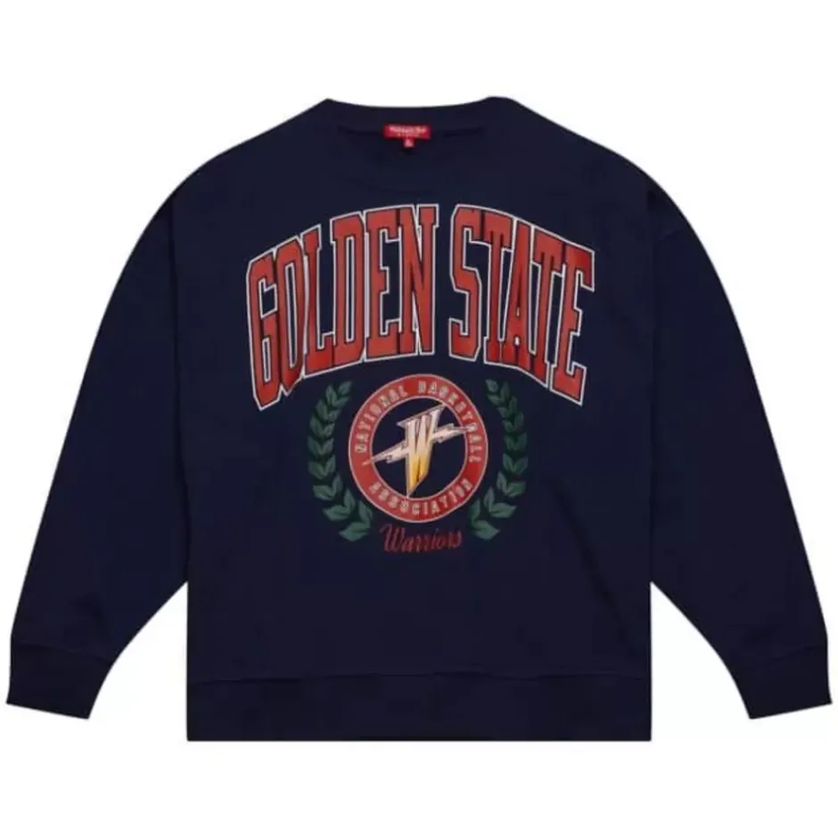 Woman Mitchell & Ness Hoodies & Sweatshirts-Womens Logo Lt Crew 2.0 Golden State Warriors